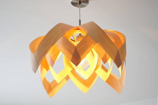 I design and manufacture unique pendant lights that give a room a nice warm illumination and when switched off are very decorative. My hand crafted lamps are from natural birch or walnut veneer. Each lamp is individually handmade onto custom templates to create their unique forms.
