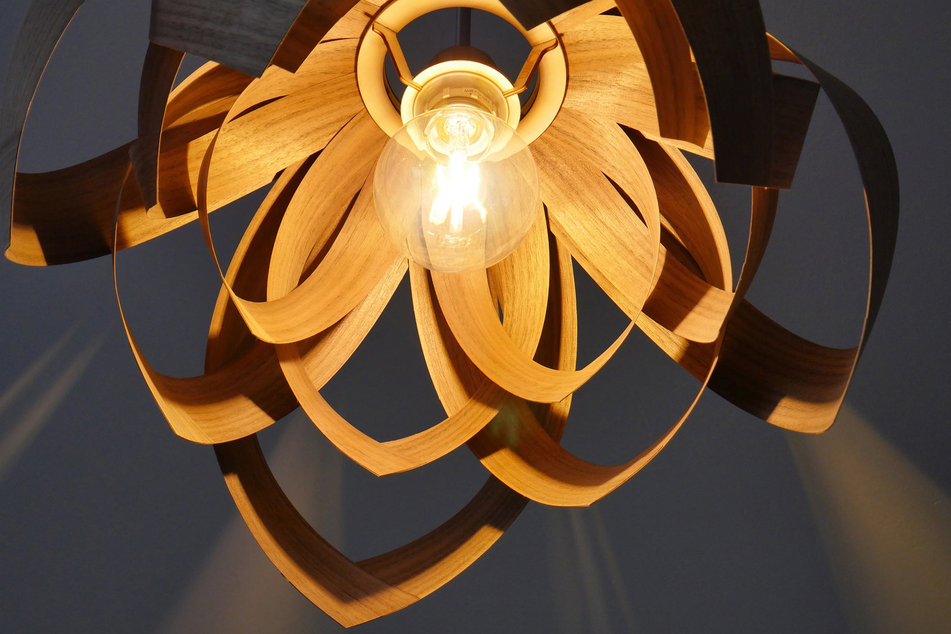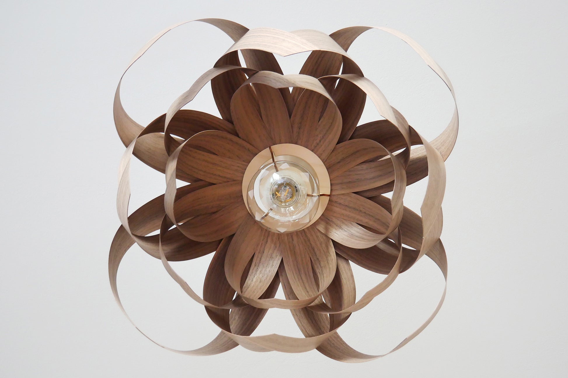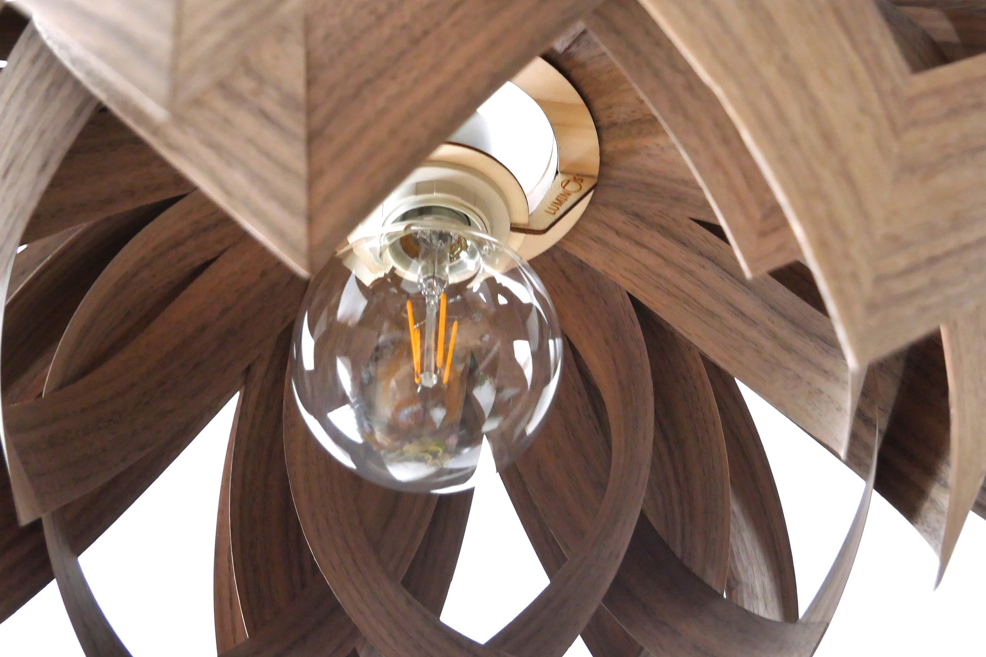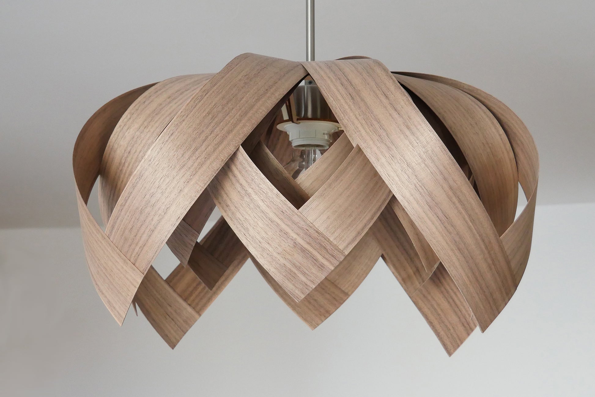 L18O, 50cm Handmade pendant lamp from walnut veneer.